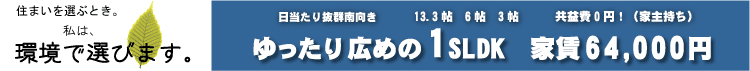 □ 1SLDK 全室角部屋南向き バルコニー 13.3帖のLDK 3帖の納戸&クローゼット