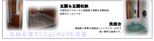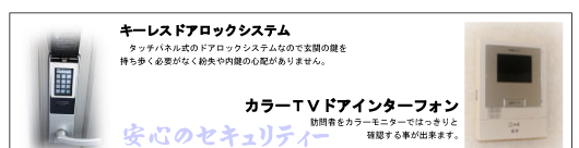 | 設備 | エアコン・給湯・バルコニー・バストイレ独立・洗濯機置き場・洗面所・シャワー・ケーブルTV・追いだき機能・プロパンガス・洗面台・フローリング・クローゼット・ガスコンロ・シャンプードレッサー・温水洗浄便座・システムキッチン・モニター付きインターフォン |